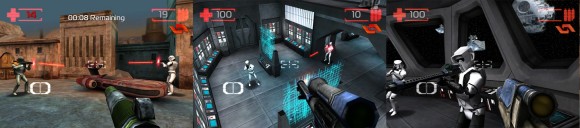 Star Wars Fans aufgepasst. In Kürze erwartet uns mit Star Wars Imperial Academy ein absoluter Leckerbissen. Dieser kostenlose Multiplayer Starwars Shooter erobert bereits im kanadischen Appstore die Herzen der iPhone Benutzer im Sturm. Die Entwickler THQ und ngmoco:) haben ein ordentliches online Spiel mit guter Grafik und sauberer Steuerung abgeliefert, auf das sogar nicht Star Wars Fans mal einen Blick werfen sollten. Besonderes gut gefällt uns:  Es kann über das 3G Netz online gefochten werden. Auch iPhone 4 Besitzer dürfen sich freuen, es gibt Retina Support. Wie gesagt leider benötigt man zur Zeit einen kanadischen iTunes Account (oder apptrackr), wir erwarten Star Wars Academy im Laufe des Tages im deutschen App Store.